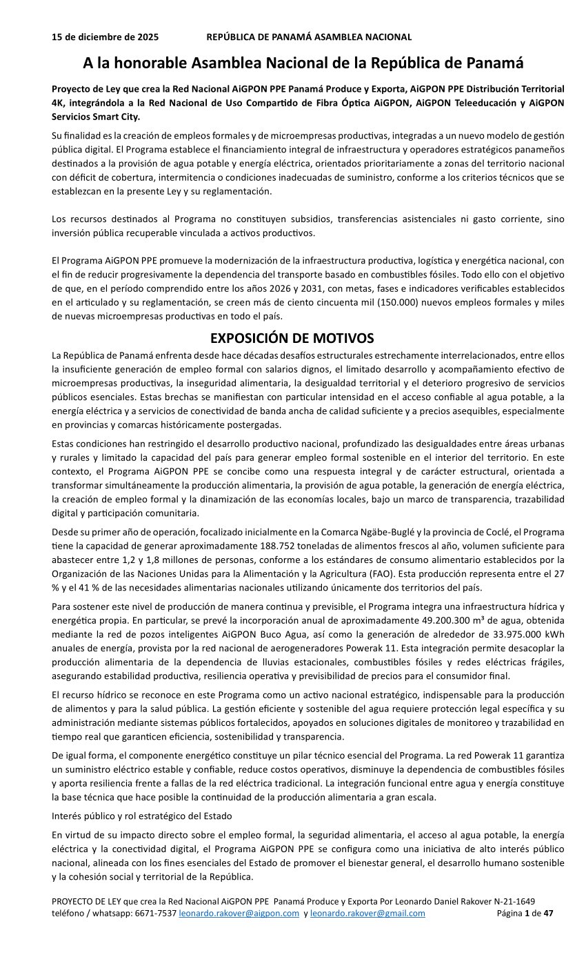 Copyright © 2026 - AiGPON  Todos los derechos reservados. AiGPON – Mapa Maestro República de Panamá 2030 Iniciativa técnica y estratégica orientada a la modernización de la infraestructura nacional. Aviso Legal: La información contenida en este sitio tiene carácter informativo y propositivo y no constituye compromiso legal alguno. AiGPON es una iniciativa independiente, sin afiliación política ni carácter gubernamental. Contacto: Leonardo Rakover  leonardo.rakover@aigpon.com